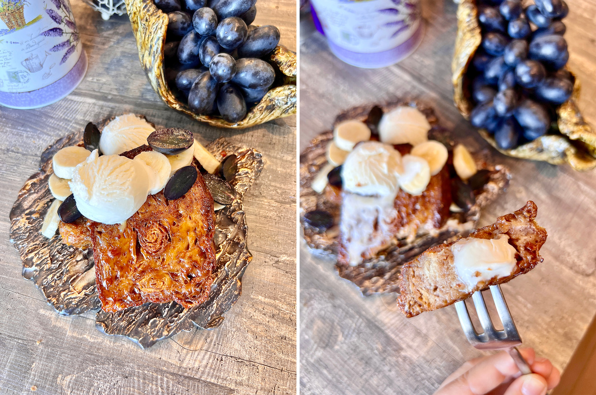 Этот десерт — лучшее решение для использования черствого хлеба. Удобно, что можно применять слоеную выпечку, бриошь или просто булки. Главное требование — хлеб должен быть застарелым.