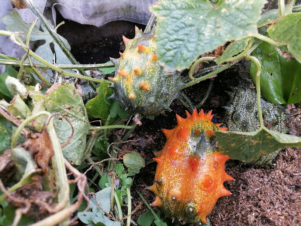 Саженцы кивано были посеяны в конце апреля и с тех пор активно росли под спанбондом. Высаженные в бочку, два куста не нуждались в особом уходе, кроме поливов и подкормок. В Сибири, где лето обычно не радует жары, не было замечено значительных трудностей с этим растением. Упомянутые жаркие дни в июле и температура до 15 градусов ночью в августе оказались вполне достаточными для развития растения.