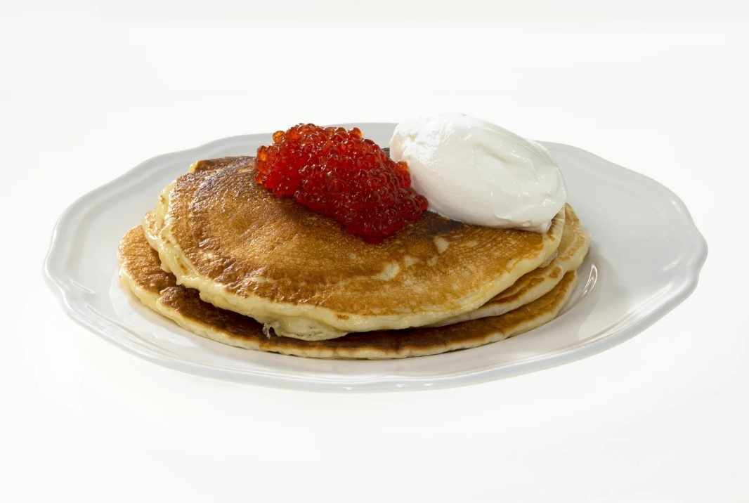 - Сметана и красная икра — по вкусу