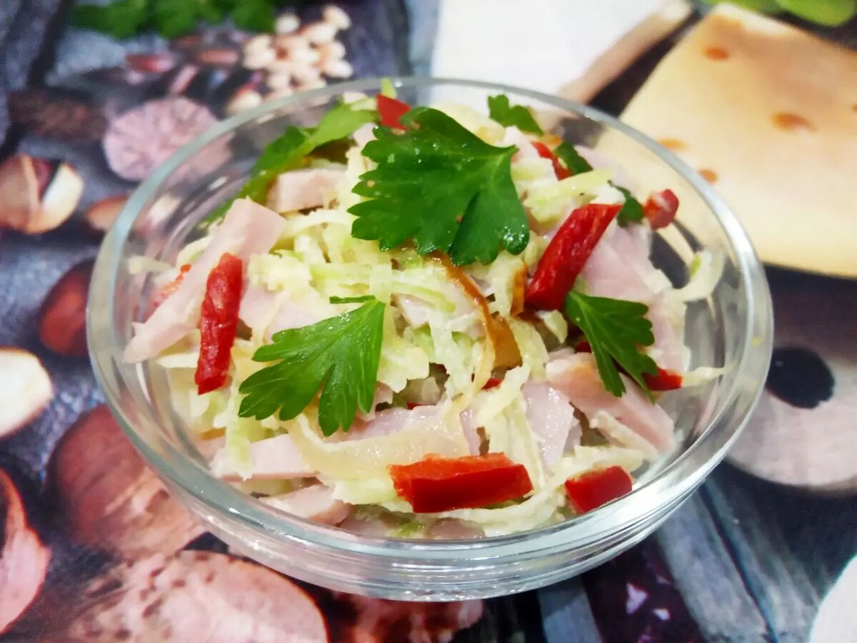 - 200 г ветчины или копченой колбасы
