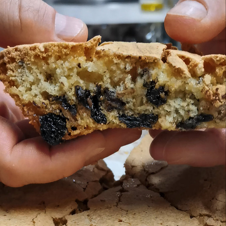 На выходе получается идеальная корочка, а внутри — пышное и ароматное тесто с черносливом, орехами и кусочками шоколада. Не лишним будет отметить, что шоколад останется целым, добавляя изюминку к вашему десерту.
