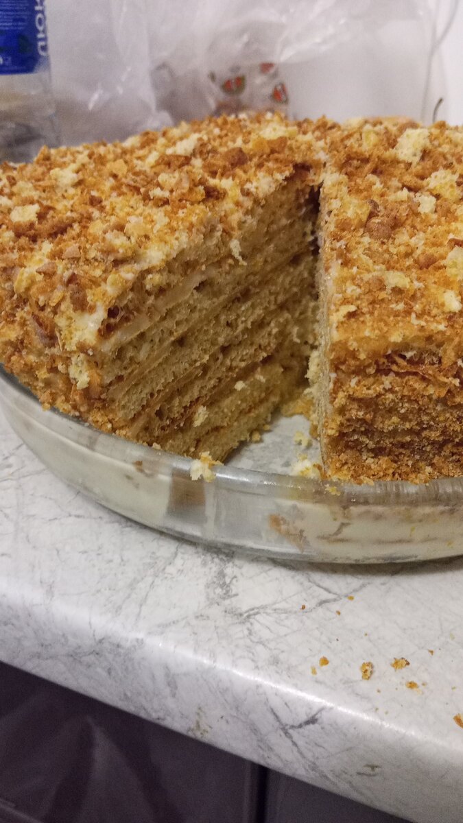 Для завершения обсыпать торт крошкой и оставить в прохладном месте на 4 часа, а лучше — на ночь. Интересный факт: настоящий вкус раскрывается на второй день!