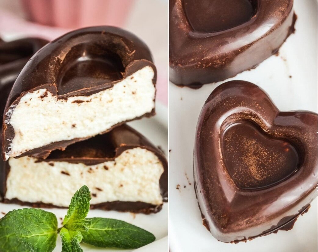 Как только шоколад застынет, заполните формы творожной массой. На этом этапе можно отправить формы в морозильную камеру, чтобы верхний слой схватился.