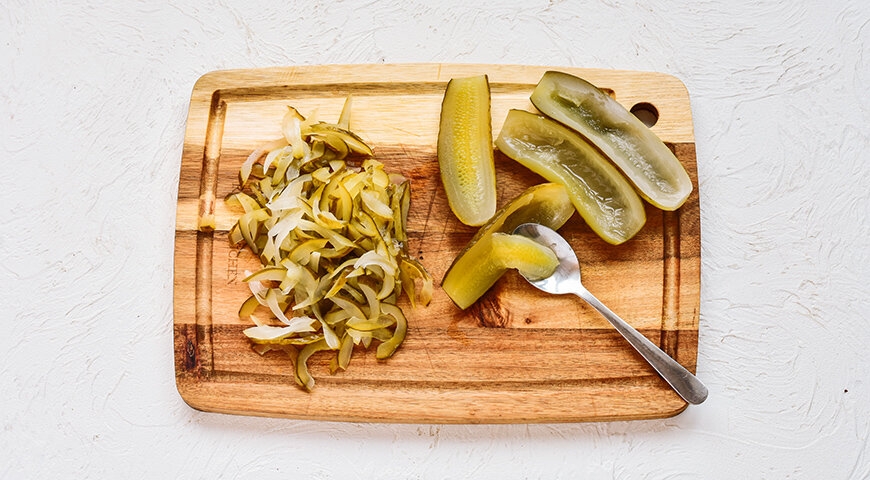 - Огурцы лучше нарезать соломкой для более насыщенного вкуса.