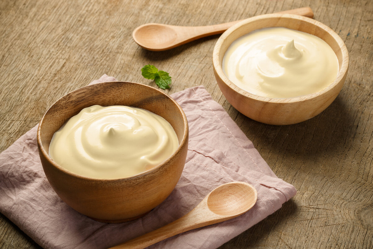- Майонез из сметаны: легкий и вкусный. Замените яйца на желтки, добавив немного горчицы и приправ по вкусу.