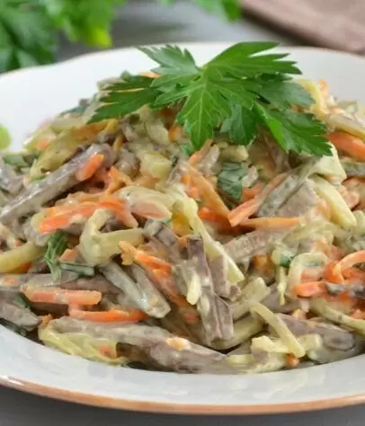 Салат из куриной печени — это не просто лакомство, а настоящая кулинарная находка. Нежная печень в сочетании с хрустящими солеными огурцами создает гармонию вкусов, которую стоит попробовать.