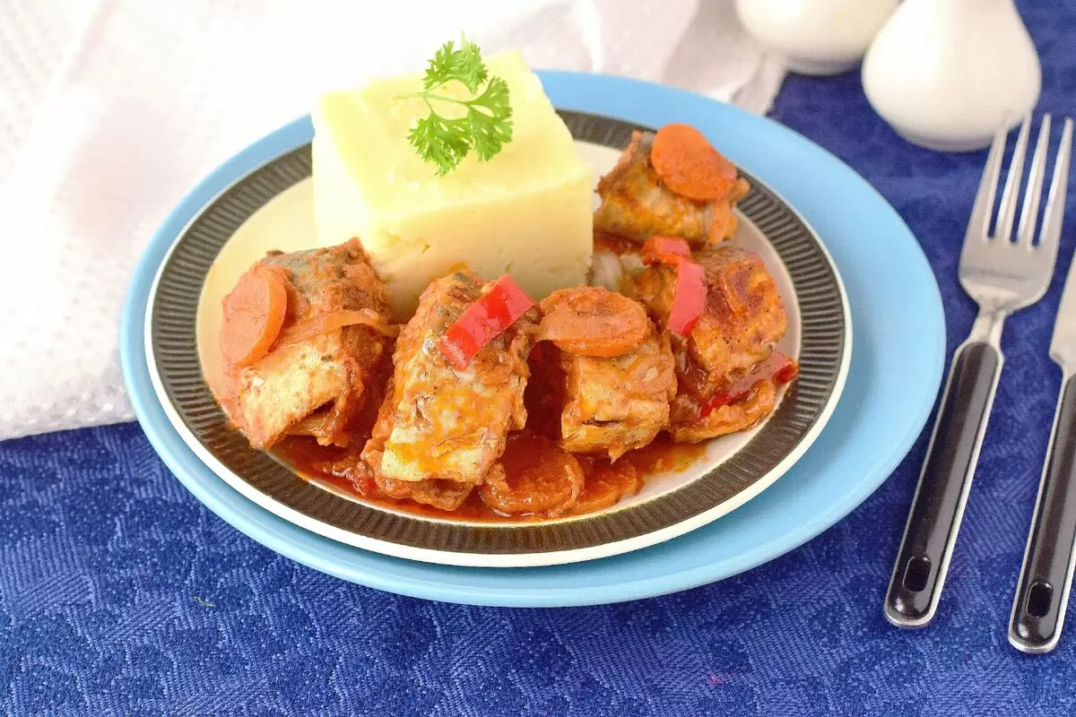 6. Тушим на медленном огне под крышкой примерно 20-25 минут, чтобы рыба полностью пропиталась вкусом овощей.