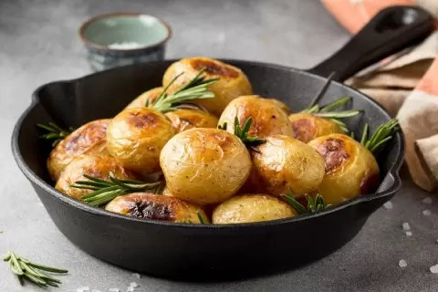 Запеченный картофель — это идеальное решение для холодных зимних дней, когда хочется чего-то по-настоящему душевного и согревающего. В этом рецепте используется необычное сочетание лимонного масла, свежего розмарина и сыра пармезан, которое придаст картошке уникальный вкус и аромат.