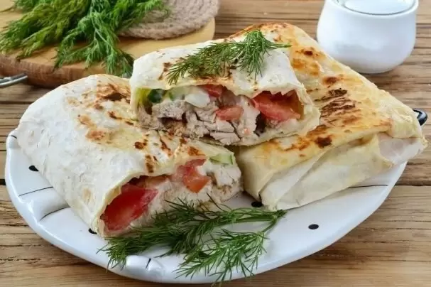 Готовая шаурма с курицей и сочным чесночным соусом обязательно станет хитом на вашем столе. Приятного вам аппетита!