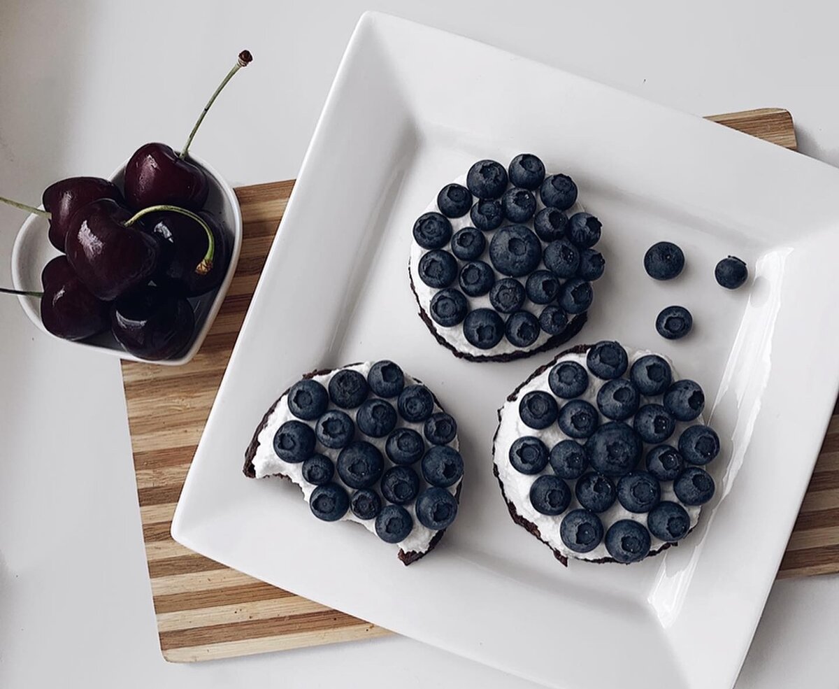 Для того чтобы собрать десерт, остывший кекс аккуратно разрезается на три части. Каждую из них обильно смазывают приготовленным кремом и украшают свежей черникой или другими ягодами на ваш вкус. Такой кекс не только красиво смотрится, но и приносит массу наслаждения.