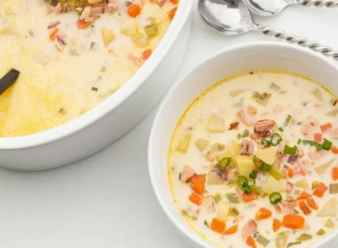 Попробуйте новый вкус в вашем рационе! Суп с копчёной семгой и сливками — это не просто еда, а настоящее кулинарное произведение искусства, которое порадует вас и ваших близких. Этот ароматный и питательный суп станет отличным решением для обеденного стола даже в самый холодный день.