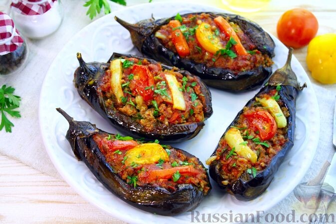 Этот рецепт штучного изыска родом из восточной кухни порадует любителей баклажанов. Баклажаны, разрезанные вдоль, запекаются и наполняются аппетитной начинкой из мясного фарша, обжаренного с луком, чесноком и сладким перцем. Для аромата добавляются свежие травы. Получается не только вкусно, но и невероятно красиво!