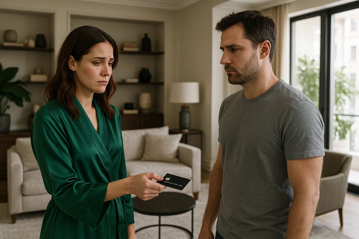 — Ты не умеешь обращаться с деньгами, — считает он. Вместо того чтобы обсуждать совместные расходы, Вадим решает взять на себя управление финансы. Зарплатная карта теперь в его руках, и она должна выдавать деньги только по мере необходимости.