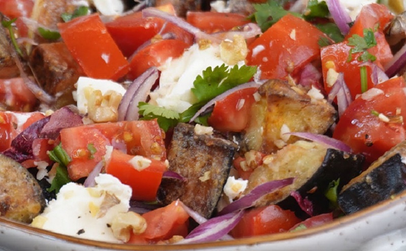 - Крахмал поможет сохранить форму баклажанов и добавить в салат ресторанной штанишки.
