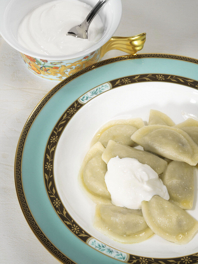 Готовые вареники выложить на тарелку, щедро полить растопленным сливочным маслом и добавить сметану. Такой домашний деликатес станет настоящим хитом за обеденным столом!