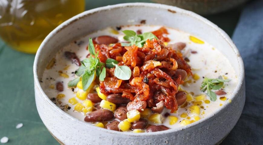 Подготовка фасоли: Замочите фасоль в холодной воде на 8–10 часов. После этого слейте воду, промойте фасоль и залейте свежей водой. Доведите до кипения, снимите с огня, слейте воду и снова залейте 1 литром свежей холодной воды. Варите на медленном огне до мягкости фасоли — это займет около часа.Приготовление кукурузы: Замороженные зерна кукурузы залейте холодной водой в кастрюле, доведите до кипения и снимите с огня. Откиньте кукурузу на сито.Финальная часть: Перемешайте кукурузу с фасолью, влейте холодное молоко и доведите до кипения. Уменьшите огонь и варите еще 20 минут. В конце добавьте соль и перец по вкусу.Приготовление лука: Лук очистите и нарежьте на четвертинки, затем тонко. Разогрейте в сковороде топленое масло и обжаривайте лук на среднем огне до золотистого цвета — около 10 минут. Снимите с огня, добавьте острый перец и приправьте солью.Подавайте суп горячим, украсив жареным луком сверху. Это блюдо станет отличным вариантом для обеда или ужина, наполненного натуральными витаминами и теплом домашнего уюта, пишет канал.