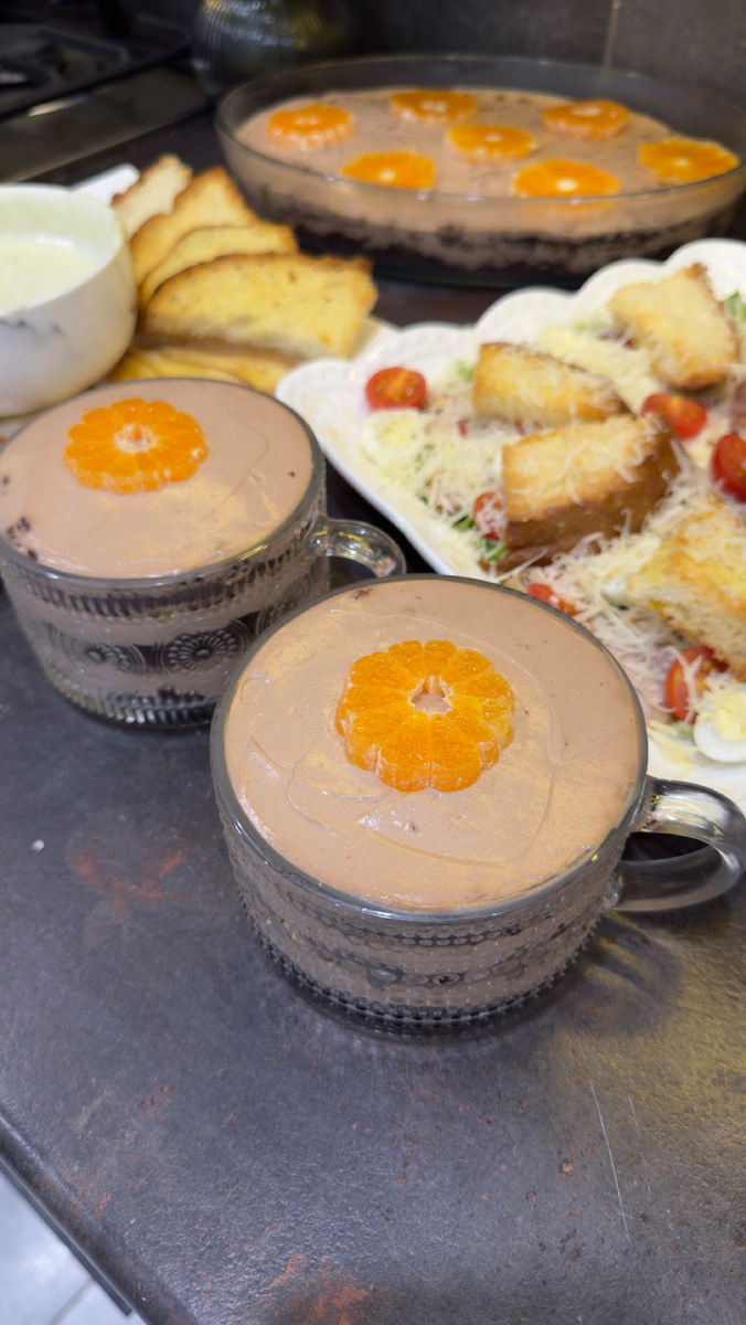 Для крема все ингредиенты смешать до однородной массы. Апельсин очистить и нарезать. В креманки собрать десерт: слой бисквита, затем крем и кусочки апельсина. Повторять слои до заполнения. По желанию украсить десерт мандарином.