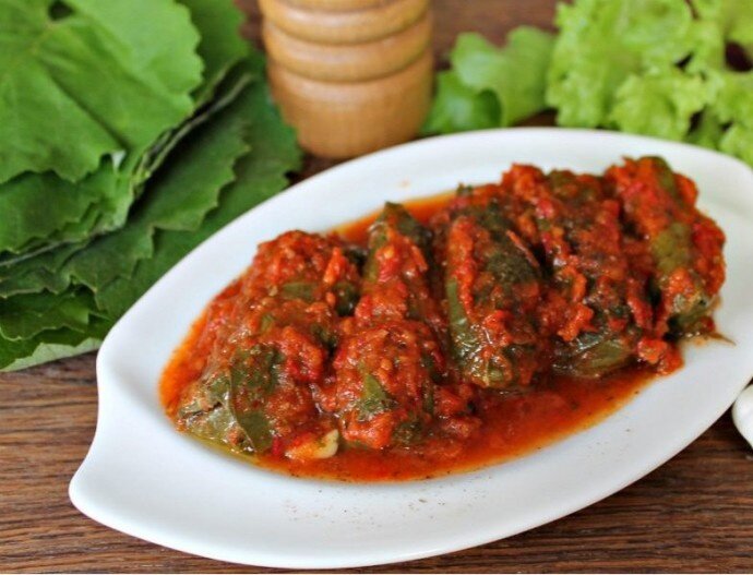 Тщательно промывайте листья винограда, затем положите порцию фарша на светлую сторону листа. Закройте края, оберните боковые стороны и аккуратно скрутите долму. Это придаст блюду компактную форму и поможет сохранить все ароматы внутри.