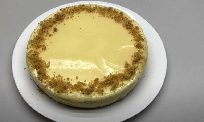 3. На охлажденную основу равномерно намажьте получившийся крем. Для изысканного вкуса можно дополнительно полить десерт растопленным шоколадом и украсить по желанию орехами, кокосовой стружкой или вафельной крошкой. Отправьте чизкейк в холодильник на 30-50 минут, и он готов к подаче.