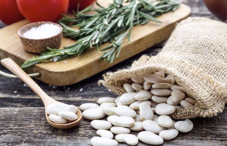 - 200 г отварной или консервированной белой фасоли;