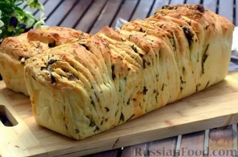 - Хлеб-гармошка с сыром и зеленью: Необычный и ароматный хлеб, замешиваемый на оливковом масле, с щедрой начинкой из сыра и свежих трав.