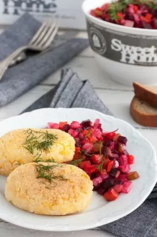 5. В глубокой сковороде разогрейте растительное масло. Обжаривайте котлеты с обеих сторон до получения золотистой корочки. Подавать на стол рекомендовано с легким свежим салатом, который прекрасно дополнит это блюдо.