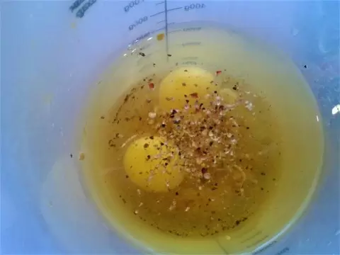 2. Важно сначала разбить яйца в отдельную чашку, чтобы избежать повреждения желтка, и только потом добавить их к остальным ингредиентам.