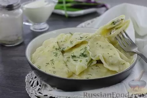 - Вареники с творогом и зеленью: Нежное тесто стремительно наполняется сливочным творогом и ароматным зеленым луком с укропом, создавая идеальное сочетание.