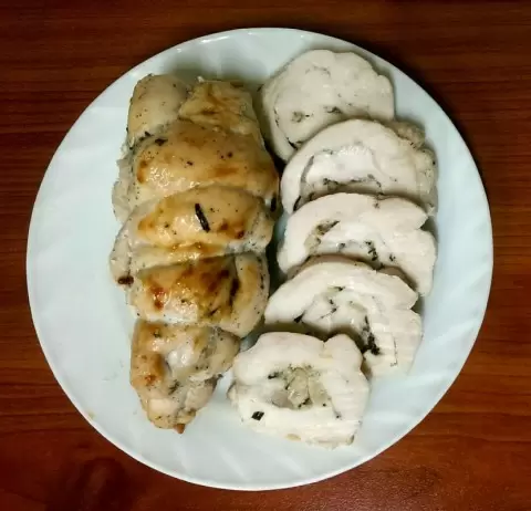 Желающие добавить в рулет немного изюминки могут включить в начинку жареный лук и тертый сыр, что придаст блюду насыщенный вкус. После того как начинка готова, аккуратно сверните куриное филе в рулет, обернув его в пакете или рукаве для запекания, как колбаску. Убедитесь, что рулет завернут плотно, а затем дополнительно оберните его в фольгу.