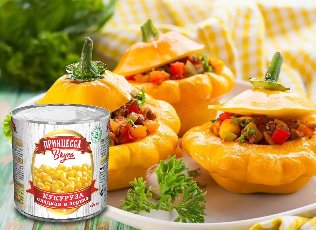 Патиссоны впечатляют своей формой и универсальностью, позволяя экспериментировать с начинками. В этот раз будут использованы красный и круглый рис, дополненные тушеными морковью, луком, перцем и кукурузой. Древние специи как зира, базилик и свежий укроп добавят богатые ароматы к этому блюду.