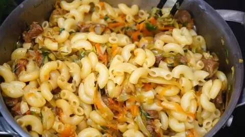 Сны о простых домашних ужинах теперь могут стать реальностью благодаря этому великолепному рецепту макарон с мясом и тушеной капустой. На первый взгляд, такое сочетание выглядит необычно, но поверьте, результат превзойдет все ожидания. Это сытное и ароматное блюдо станет настоящей звездой вашего стола, обгоняя по популярности привычные макароны с котлетами.