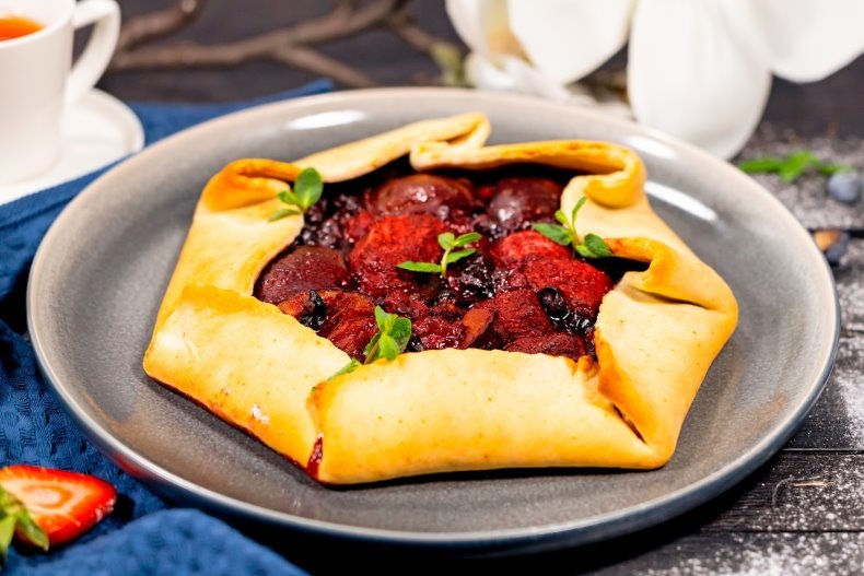 • В центр раскатанного теста распределите ягодную начинку, оставляя 5 см до краев. Аккуратно загните края теста, формируя аккуратный бортик.