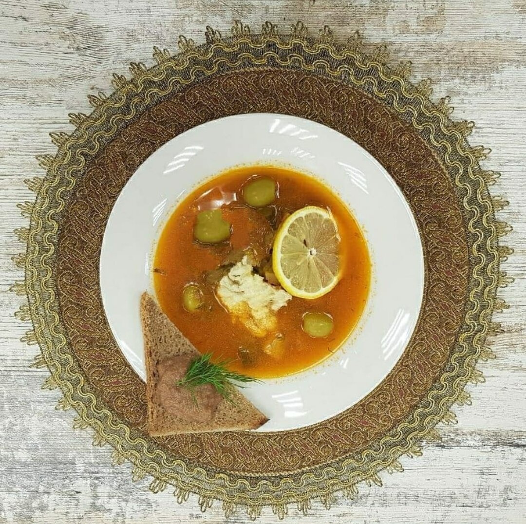 Когда бульон готов, следует процедить его. Лук нарежьте полукольцами и обжарьте на растительном масле до золотистого цвета. Затем в бульон добавьте стакан огуречного рассола, доведите до кипения и закиньте нарезанные огурцы, обжаренный лук, лавровый лист, соль и перец.
